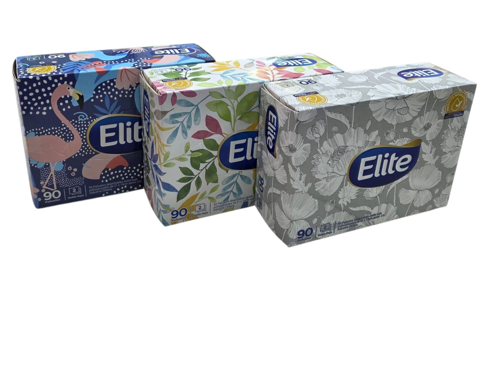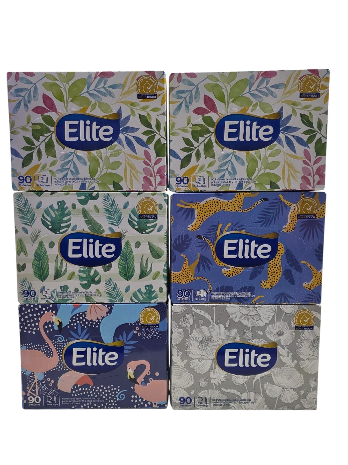 Facial doble hoja de 90 unidades con distintos diseños para ser utilizados por toda la familia. Producto suave para utilizar en todo momento